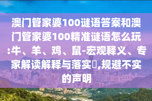 澳門管家婆100謎語答案和澳門管家婆100精準謎語怎么玩:牛、羊、雞、鼠-宏觀釋義、專家解讀解釋與落實?,規(guī)避不實的聲明