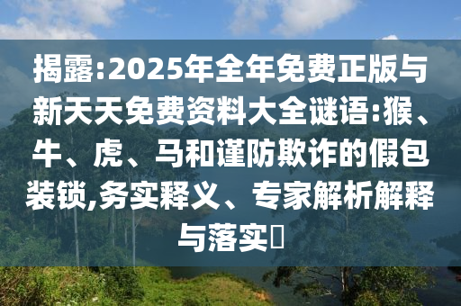揭露:2025年全年免費(fèi)正版與新天天免費(fèi)資料大全謎語(yǔ):猴、牛、虎、馬和謹(jǐn)防欺詐的假包裝鎖,務(wù)實(shí)釋義、專(zhuān)家解析解釋與落實(shí)?