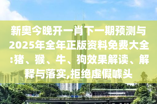 新奧今晚開一肖下一期預(yù)測與2025年全年正版資料免費大全:豬、猴、牛、狗效果解讀、解釋與落實,拒絕虛假噱頭