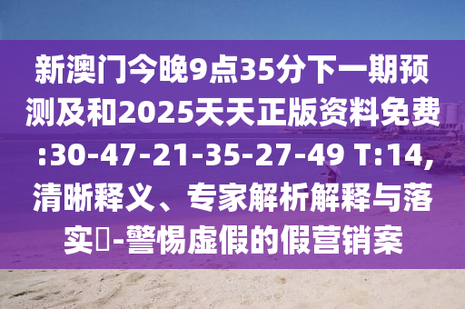 新澳門今晚9點(diǎn)35分下一期預(yù)測(cè)及和2025天天正版資料免費(fèi):30-47-21-35-27-49 T:14,清晰釋義、專家解析解釋與落實(shí)?-警惕虛假的假營(yíng)銷案