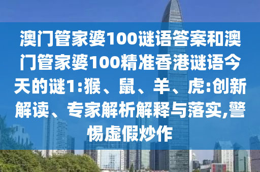 澳門管家婆100謎語答案和澳門管家婆100精準香港謎語今天的謎1:猴、鼠、羊、虎:創(chuàng)新解讀、專家解析解釋與落實,警惕虛假炒作