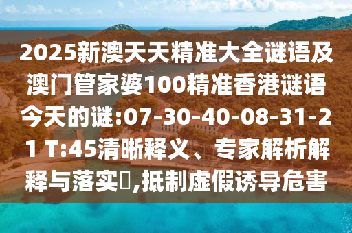 2025新澳天天精準大全謎語及澳門管家婆100精準香港謎語今天的謎:07-30-40-08-31-21 T:45清晰釋義、專家解析解釋與落實?,抵制虛假誘導危害