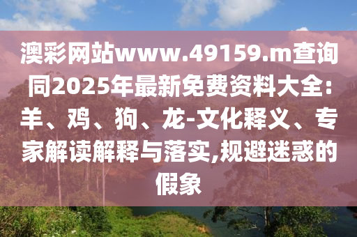 澳彩網(wǎng)站www.49159.m查詢同2025年最新免費(fèi)資料大全:羊、雞、狗、龍”的文化釋義、專家解讀解釋與落實(shí),以及如何規(guī)避迷惑的假象,這是一個涉及多個層面的問題,我將從全面釋義、專家解讀與落實(shí)、警惕虛假宣傳三個方面進(jìn)行解析和描述。