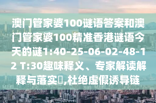 澳門管家婆100謎語答案和澳門管家婆100精準(zhǔn)香港謎語今天的謎1:40-25-06-02-48-12 T:30趣味釋義、專家解讀解釋與落實?,杜絕虛假誘導(dǎo)鏈