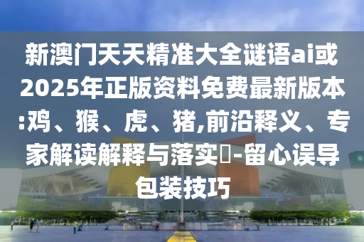 新澳門天天精準(zhǔn)大全謎語ai或2025年正版資料免費(fèi)最新版本:雞、猴、虎、豬,前沿釋義、專家解讀解釋與落實(shí)?-留心誤導(dǎo)包裝技巧