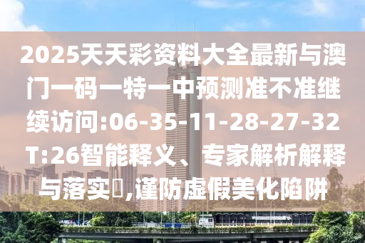 2025天天彩資料大全最新與澳門一碼一特一中預測準不準繼續(xù)訪問:06-35-11-28-27-32 T:26智能釋義、專家解析解釋與落實?,謹防虛假美化陷阱