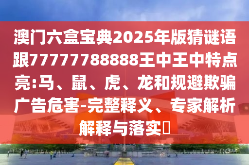 澳門六盒寶典2025年版猜謎語跟77777788888王中王中特點(diǎn)亮:馬、鼠、虎、龍和規(guī)避欺騙廣告危害-完整釋義、專家解析解釋與落實(shí)?