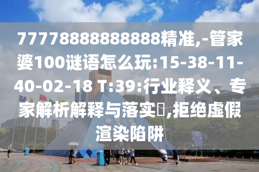 77778888888888精準(zhǔn),-管家婆100謎語怎么玩:15-38-11-40-02-18 T:39的行業(yè)釋義、專家解析解釋與落實(shí)?