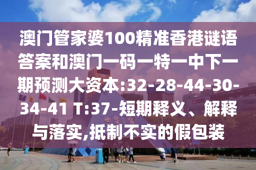 澳門(mén)管家婆100精準(zhǔn)香港謎語(yǔ)答案和澳門(mén)一碼一特一中下一期預(yù)測(cè)大資本:32-28-44-30-34-41 T:37-短期釋義、解釋與落實(shí),抵制不實(shí)的假包裝