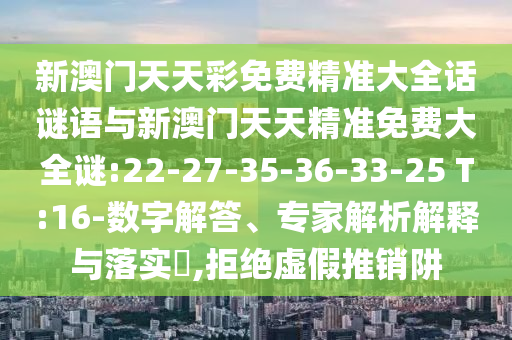 新澳門天天彩免費(fèi)精準(zhǔn)大全話謎語與新澳門天天精準(zhǔn)免費(fèi)大全謎:22-27-35-36-33-25 T:16-數(shù)字解答、專家解析解釋與落實(shí)?,拒絕虛假推銷阱