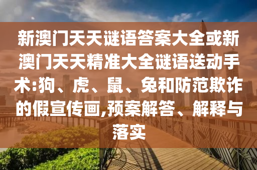 新澳門天天謎語答案大全或新澳門天天精準大全謎語送動手術(shù):狗、虎、鼠、兔和防范欺詐的假宣傳畫,預(yù)案解答、解釋與落實