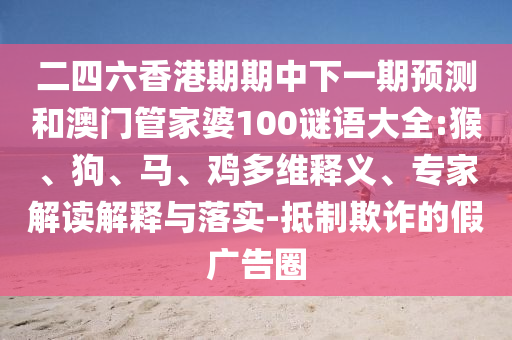 二四六香港期期中下一期預(yù)測(cè)和澳門管家婆100謎語大全:猴、狗、馬、雞多維釋義、專家解讀解釋與落實(shí)-抵制欺詐的假?gòu)V告圈